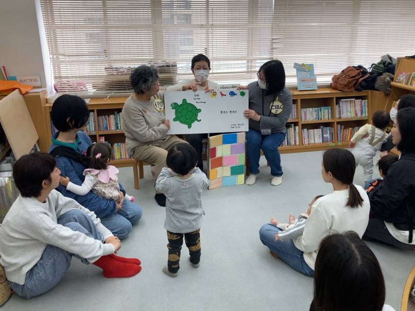 子育てサポートえんとのコラボ企画「多言語おはなし会」を行いました。親子で一緒にてあそびをしたり、外国語を交えた絵本のよみきかせをきいたりと、みなさん、なごやかな雰囲気で楽しまれていました。